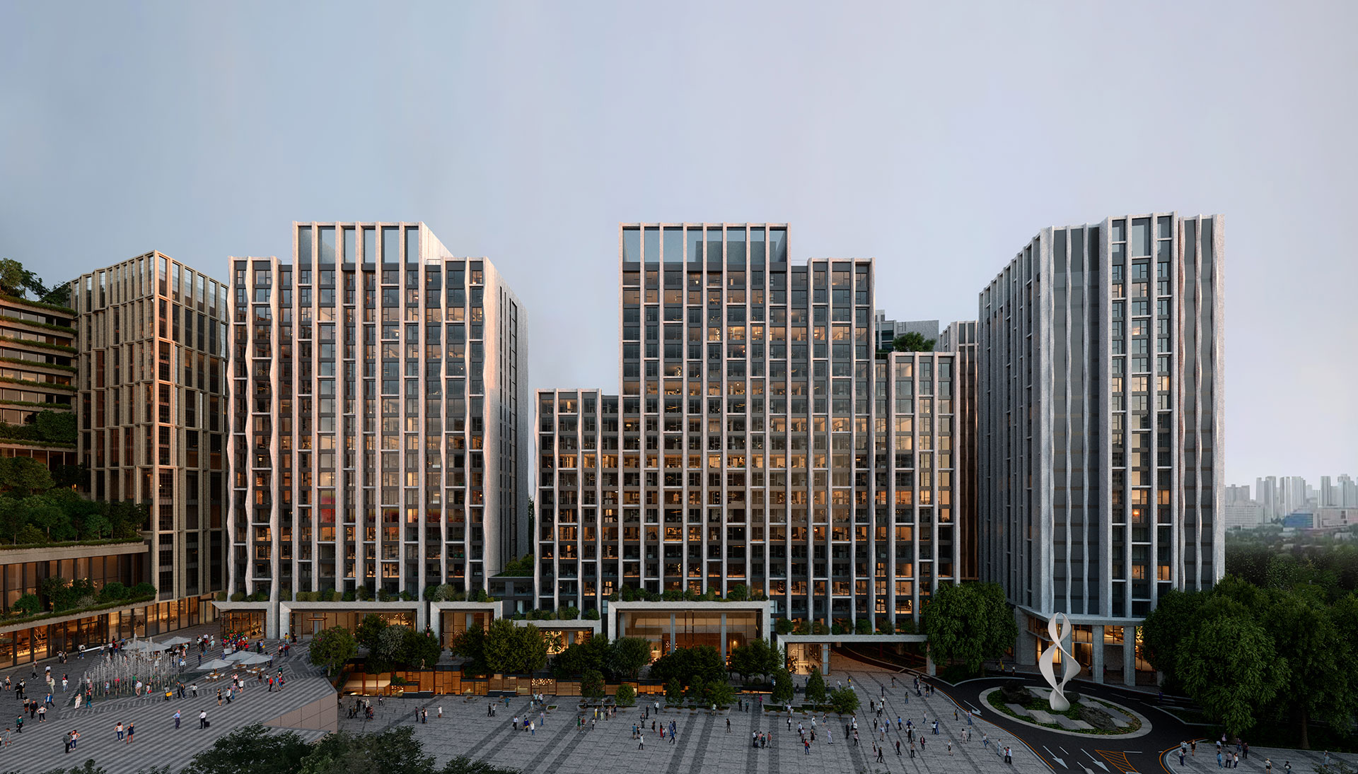 더파크사이드 웨이 단지 중앙을 가로지르는 330m의 아이코닉한 차 없는 거리